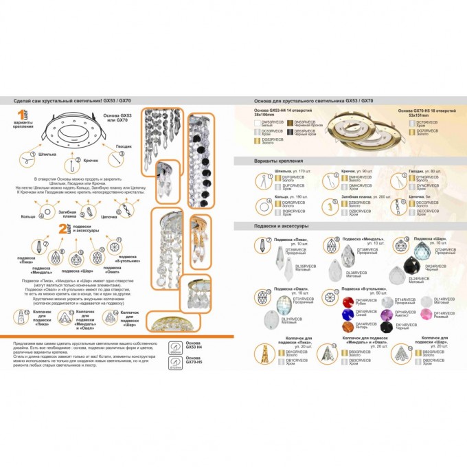 Набор ECOLA "Сделай сам Хрустальный светильник" Колпачок для подвесок Миндаль и Овал, Золото, упаковка 20шт DB3GRVECB